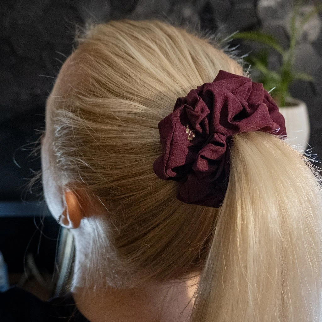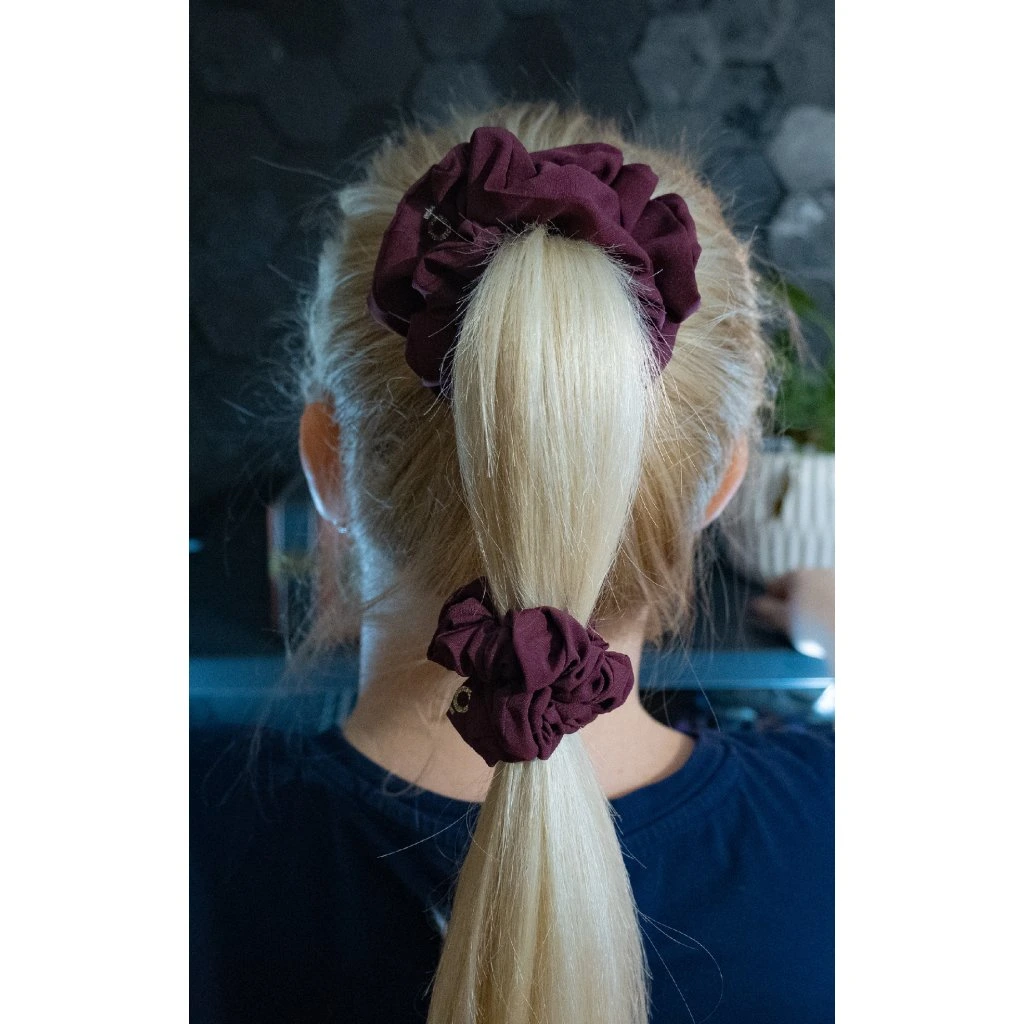 Bordó, tmavá elegantní... Lehká hedvábná gumička. Pevně drží i na jemných vlasech, vhodná pro každého, kdo nemá rád zátěž ve vlasech. Materiál je příjemný a téměř nic neváží přesto je nadýchaná. Má matný vzhled - méně extravagantní. Nemotá se do vlasů a nepřelamuje je jako tenké gumičky. Je šetrnou alternativou pro váš účes.