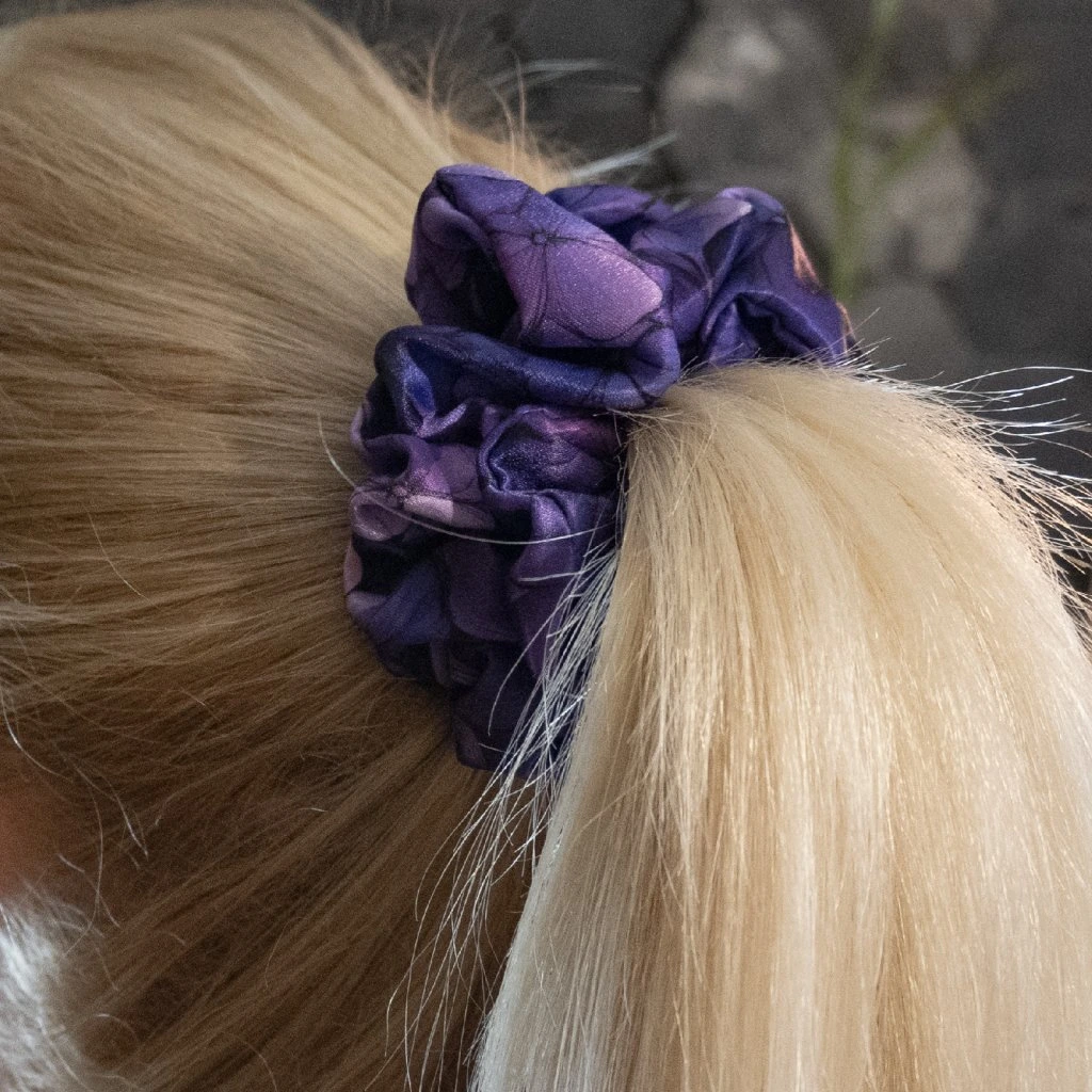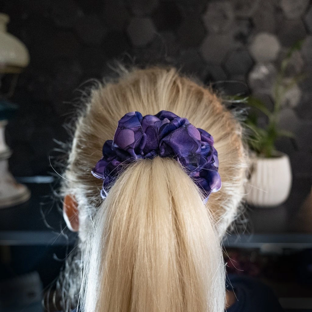 Culík plný fialek. Lehká hedvábná gumička. Pevně drží i na jemných vlasech, vhodná pro každého, kdo nemá rád zátěž ve vlasech. Materiál je příjemný a lehký. S jemným leskem. Nemotá se do vlasů a nepřelamuje je jako tenké gumičky. Je šetrnou alternativou pro váš účes.