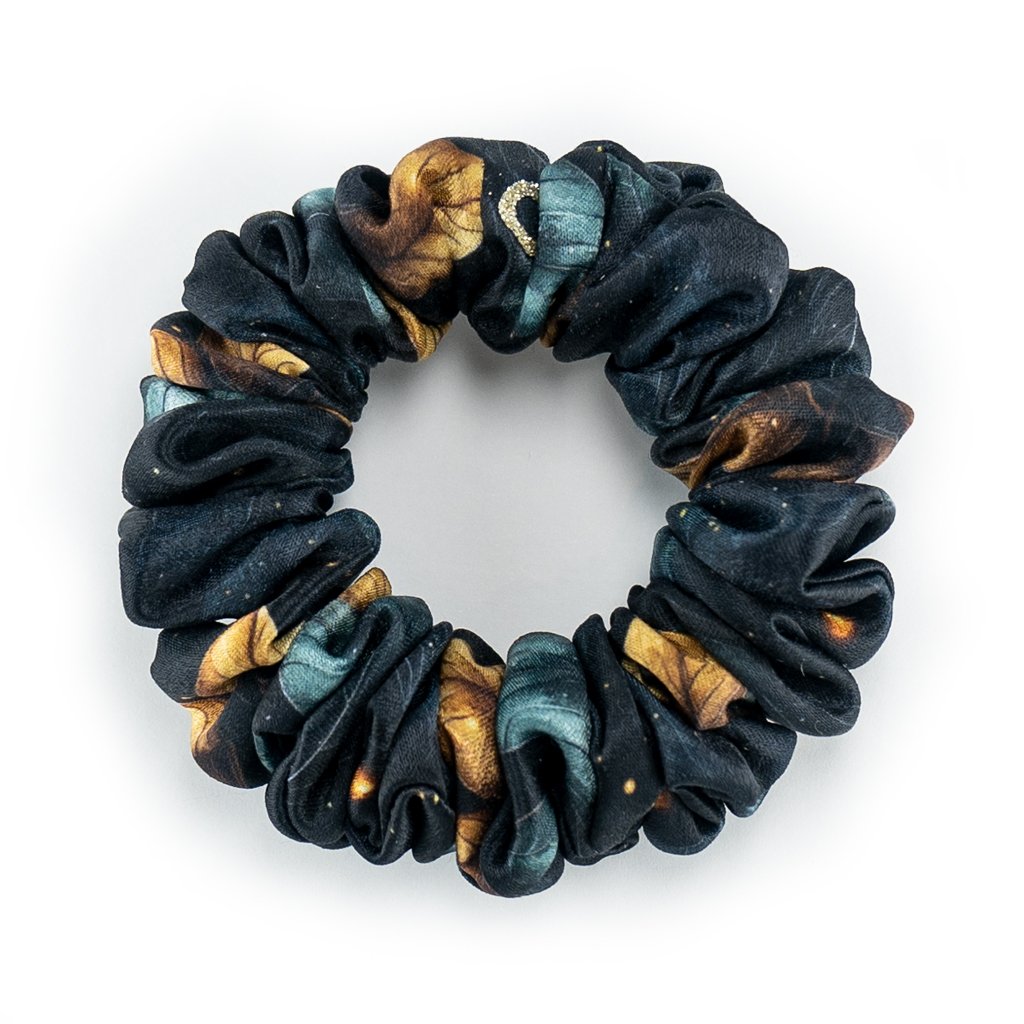 Zlato! No nebo alespoň zlaté lístky. Lehká hedvábná gumička. Pevně drží i na jemných vlasech, vhodná pro každého, kdo nemá rád zátěž ve vlasech. Materiál je příjemný a lehký. S jemným leskem. Nemotá se do vlasů a nepřelamuje je jako tenké gumičky. Je šetrnou alternativou pro váš účes.