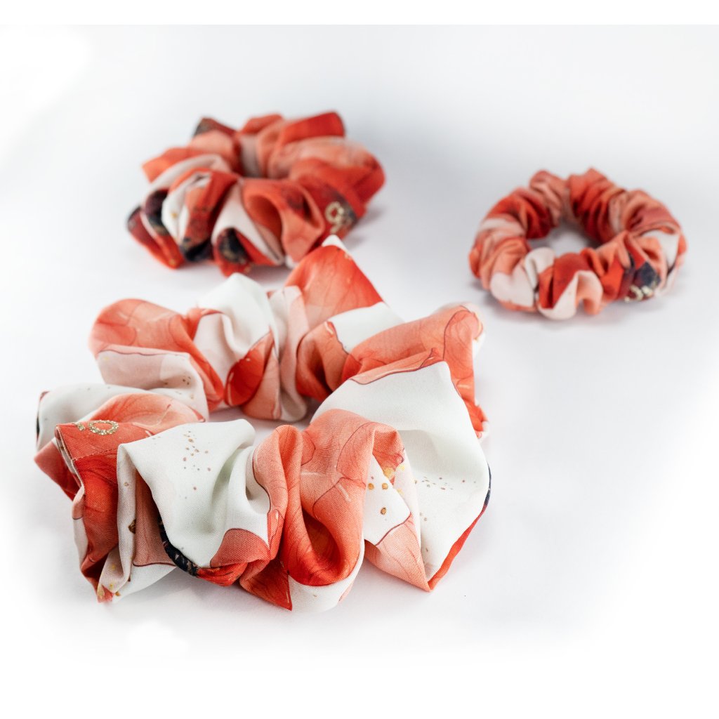 Maková panenka... Lehká hedvábná gumička. Pevně drží i na jemných vlasech, vhodná pro každého, kdo nemá rád zátěž ve vlasech. Materiál je příjemný a téměř nic neváží přesto je nadýchaná. Má matný vzhled - méně extravagantní. Nemotá se do vlasů a nepřelamuje je jako tenké gumičky. Je šetrnou alternativou pro váš účes.
