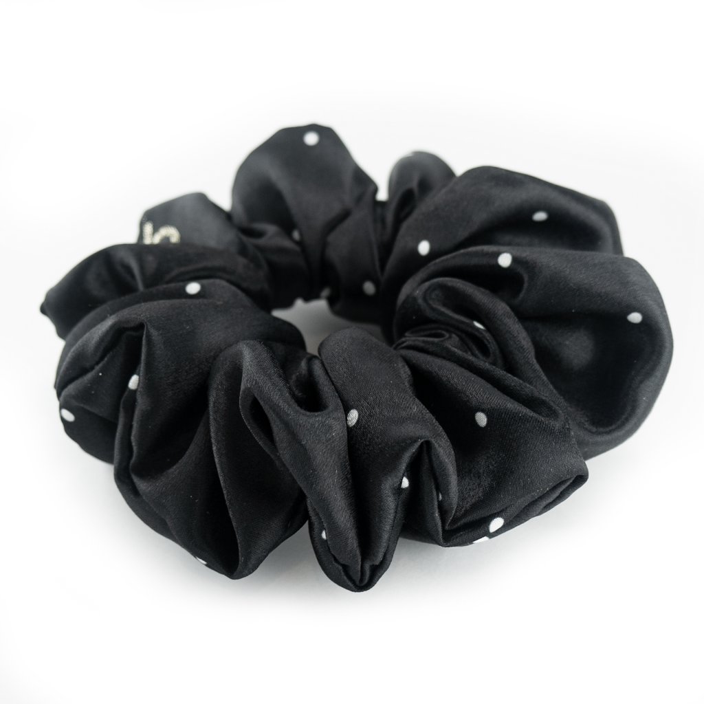 Puntikatá krasavice. Lehká hedvábná gumička. Pevně drží i na jemných vlasech, vhodná pro každého, kdo nemá rád zátěž ve vlasech. Materiál je příjemný a lehký. S jemným leskem. Nemotá se do vlasů a nepřelamuje je jako tenké gumičky. Je šetrnou alternativou pro váš účes.